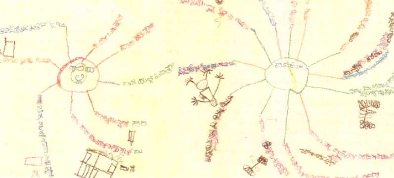 It was difficult for pupils to identify the differences or relations between learning at home and at school. One pupil said they learn songs at home and at school. Another said that ''if I learn from books I forget, if my parents show me how to do it on the farm I remember'. One boy then said that when a teacher is talking specifically about agriculture his parents have told him 'what your teacher tells you in school is false - we teach you better'. Once agriculture came into the discussion the boys livened up and were very quick to answer questions. On one pupil's mapping diagram he had written he works in the field. On inquiring further he went into detail about growing tomatoes, including the types of fertiliser and pesticides they use. Another boy said 'we now use hybrid varieties, so pests are not a problem!' and a girl said 'in science we learnt about soil erosion, at home I told my parents that they should use plants and roots when they make bunds, to decrease the risk of soil erosion'.