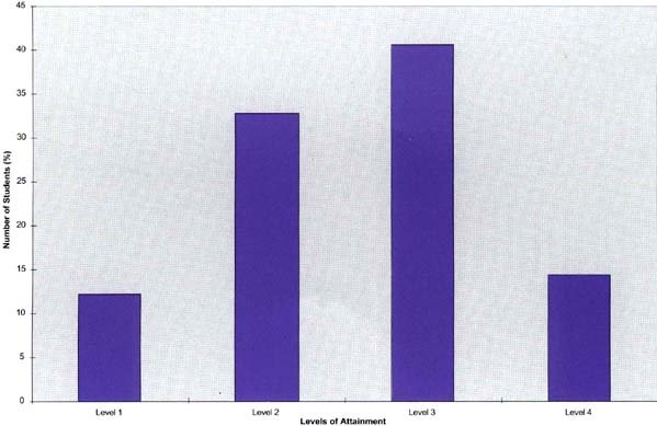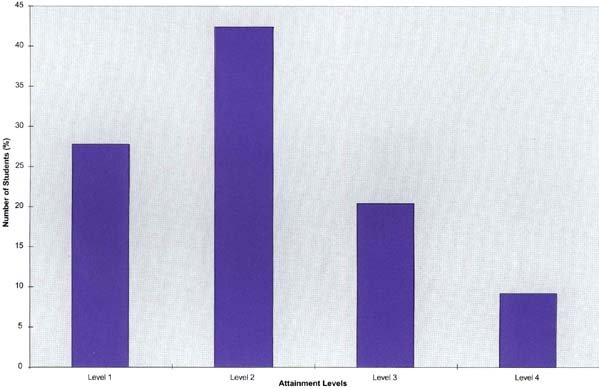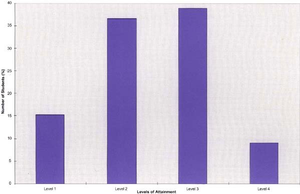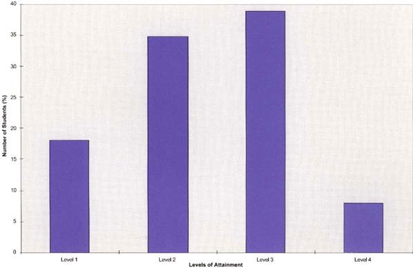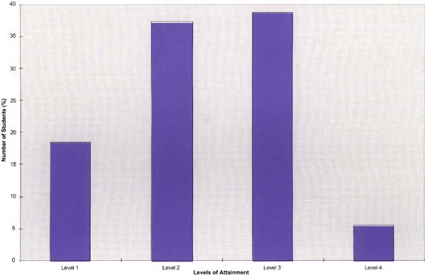 Figure 1 shows that 22 percent of children achieved Level 1. 38.8 percent of children achieved Level 2 while 27.7 percent achieved Level 3. Only 11.1 percent of children achieved Level 4.