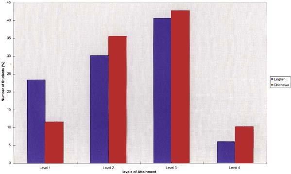 Figure 17 shows the profile of achievement for story writing in English and Chichewa.