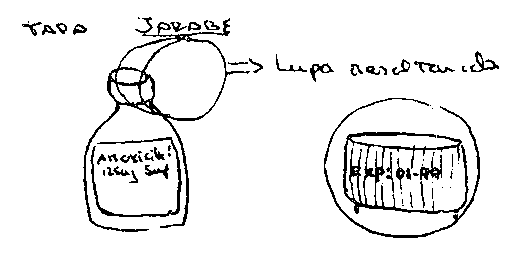 Al puesto de Salud de Cushillococha se le van a vencer 300 tabletas de Amoxicilina de 500mg que compraron del Centro de Salud de Caballococha el 23-04-96 con la boleta No 123 (Este dato lo tiene anotado en su kardex), las tabletas se vencen el 12-12-97, el Técnico entonces coloca en un envase las 300 tabletas y anota allí lo siguiente: