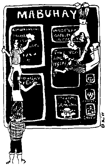 En las Islas Filipinas, una comunidad desarrolló su propio periódico en pizarrones. Francisco Silva, sacerdote católico, desarrolló un periódico escrito diariamente en un pizarrón (32 pies por 10 pies) en la plaza central del pueblo de Moalboal (población de 18,000). Existen también 24 pizarras mas pequeñas localizadas a través del pueblo. La pizarra muestra cinco artículos cada día - uno local, uno regional y uno de interés nacional o internacional, una editorial y un artículo principal (por lo general acerca de la salud, desarrollo comunitario, etc.). La junta editorial del periódico está compuesta por miembros de la comunidad quienes Cambien escriben los artículos. Los estudiantes de escuela superior escriben los artículos en los pizarrones.