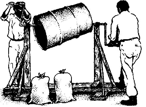 Un barril de mezcla para la aplicación de insecticidas y/o fungicidas a las semillas antes de la siembra.