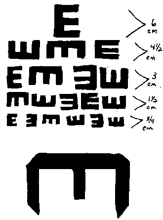 e. Observando los ojos: Puede hacer un modelo para prueba visual de cada alumno. Tiene que hacer un modelo de visión como la del dibujo. También tiene que cortar una "E" grande de una cartulina.