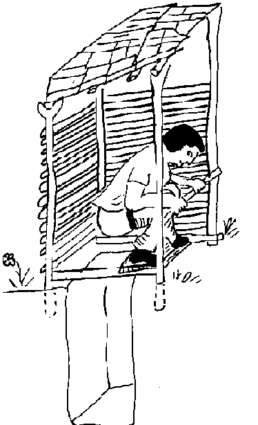 La letrina representada en este gráfico es fácil de hacer y cuesta muy poco. Para hacer una letrina mejor, tiene que taparla. Las letrinas cerradas son mejores porque las moscas no pueden entrar y el mal olor no puede salir. Una letrina cerrada está cubierta por una plancha con un hueco en el medio y una tapa sobre el hueco. La plancha se puede hacer de madera o de cemento es mejor porque encierra mejor los malos olores y no se pudre. Para disminuir el olor y para que no se entren las moscas, échele un poco de tantita, cal o tierra cade vez que lo use.