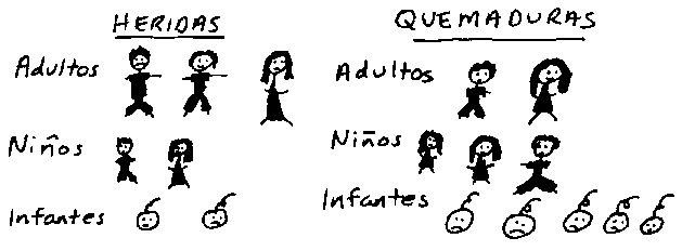 Después de la discusión, el profesor puede dibujar en el pizarrón, contando los tipos de accidentes y números de personas afectadas en la comunidad.