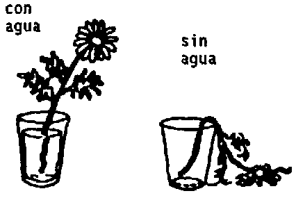 Ejemplo: Pueden buscar 2 flores, pondrán una en un vaso con agua y la otra la dejarán sin agua. Observarán como una de las flores permanece con vida mientras que la otra se marchita y muere. Pregúnteles por que sucede esto.