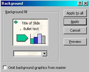 Click the down arrow in the Background dialogue box and then select Fill Effects from the drop down menu which appears as shown below:
