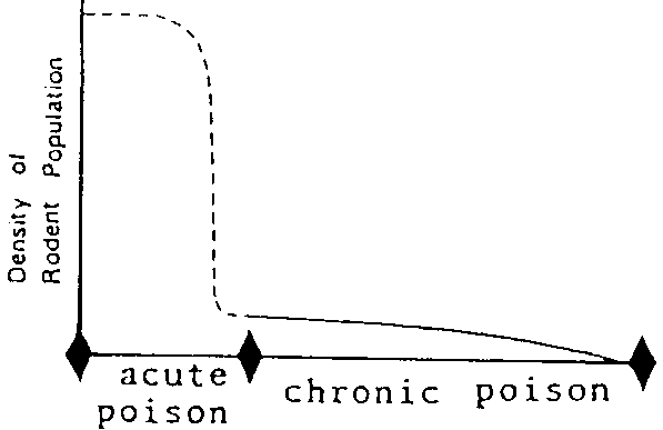 Acute poisons are used only in the case of high rodent population with the aim of reducing the degree of infestation to a low level within a short period. Subsequently, chronic poisons or other methods must be used for further control.