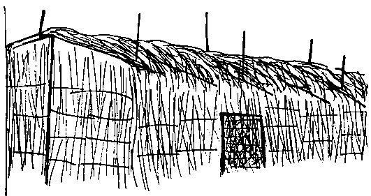 These packinghouses are made from natural materials that can be moistened with water. Wetting the walls and roof first thing in the morning creates conditions for evaporative cooling of a packinghouse that is made from straw.