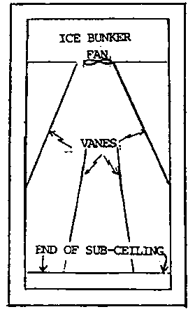 Back of Room - an electric fan motor is commonly mounted inside the cold room, fan capacity (CFM= cubic feet/min) should at least equal the empty volume of-the room (i.e. 12x8x8=768 cu ft., so, 768 CFM in minimal. more is better. for this room)