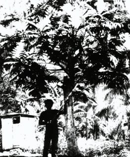 Breadfruit trees naturally grow tall, but can be cut back to keep the breadfruit within easy reach.