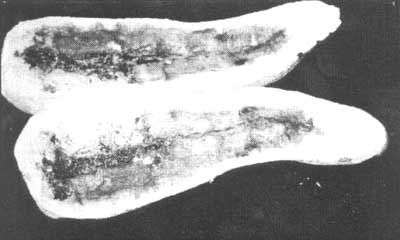 Chips from 30 farm and station storage structures, were drawn each month, and samples were immediately checked visually on the spot and then sealed in plastic bags for further analysis in the laboratory. The samples of 20 dried chips weighed approximately 1200 - 2400 g. Every sample was analysed for moisture content, weight, inner and outer volume, visual damage, and number and species of insects. Weight losses were corrected for moisture content changes. Chips were separated into four categories: undamaged, insect damage, mould damage and rodent damage. During the monthly visits, the storage structures and the stored produce were carefully checked and notes were taken on the laboratory sheets. The analysis of weight losses of dried chips was performed in the same manner as under controlled conditions, so that the costs, quality and precision of the methods could be compared (see section 3).