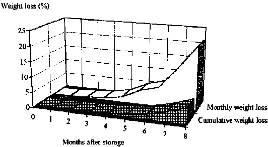 The data were analysed using SAS computer programs. Means of weight losses assessed with different methods were compared with a 2-tailed t-test (Dunnett) and for a confidence level of 95%. Data input and analysis for the questionnaires were done with the "Epi Info Version 5", a word processing, database and statistical system for epidemiology, on microcomputers provided by the GTZ Health Project in Tamale.