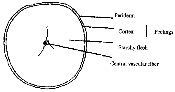 A transverse section of a mature yam tuber shows it to be composed of four concentric layers: