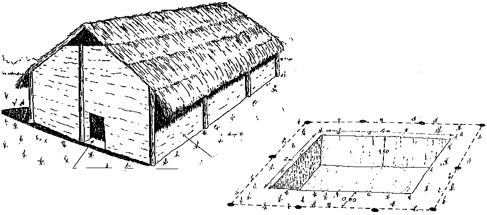 Figure 4.3 A rodent-proof yam barn (Knoth 1993)