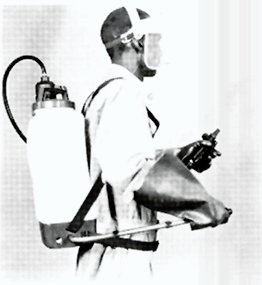 For the greatest accuracy the quantity of concentrate should be made up to the required total of 5 litres of spray fluid and not added to 5 litres of water. Only clean, cold water, free from any foreign particles should be used for diluting insecticide concentrates. All mixing containers and spray tanks should also he clean since contamination of spray with other chemicals may lead to rapid breakdown of the insecticide or taint of foodstuffs receiving the treatment. A solvent-resistant, waterproof apron and gauntlet gloves must he worn when insecticide concentrates are handled. Any splashes on the skin must be washed off immediately. Water dispersible powders must be thoroughly mixed in a small quantity of water to a creamy consistency before the remainder of the water is added. The powder will not disperse easily if added directly to the total volume of water used for dilution.