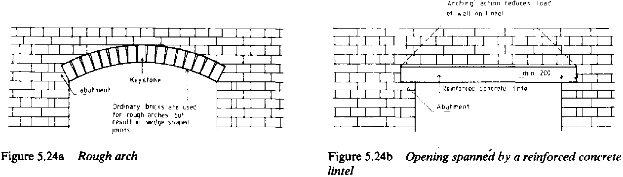 Stone is generally used as a facing for a steel or concrete lintel. Unless reinforced with mild steel bars or mesh, brick lintels are only suitable for short spans up to Im, but like stone, bricks are also used as a facing for a steel or concrete lintel.