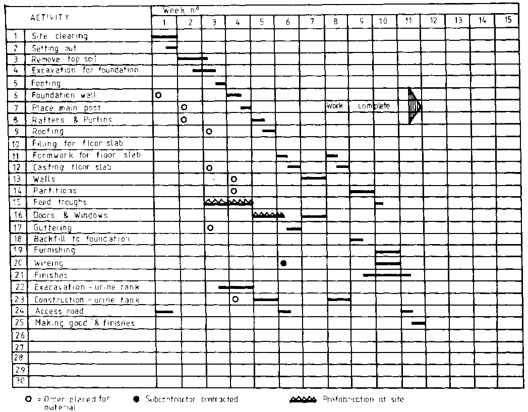 The first part is produced by the farmer or his advisor and covers all work up to the time site operations start. It will include the sketching, any applications to authorities, final working drawings, tendering and ordering.