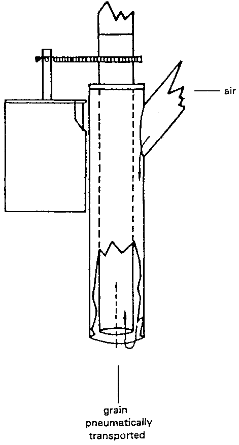 Pneumatic grain samplers overcome the main disadvantages of manual operation by using powered-suction to penetrate the static bulk of grain, and by taking a continuous sample. They are quicker to operate than manual samplers, and can be used easily to obtain samples from the sides and floors of bulk grain containers. An example is shown in Figure 3.5 (see Figure 3.5: Pneumatic Sampler.).