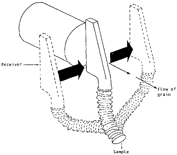 The limpet sampler is capable only of extracting material from part of a grain stream. Figure 3.7 (see Figure 3.7. Limpet sampler.) shows the auger principle in operation. If there is any appreciable stratification of material in the stream, samples cannot be regarded as representative.