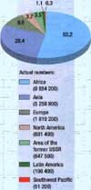 Total number of concern to UNHCR: 27.5 million; including 18.5 million refugees, 5.5 million internally displaced persons, and 3.5 million others. Source: UNHCR