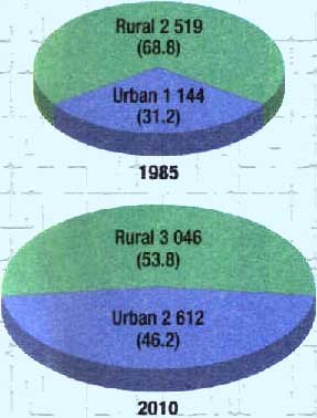 In the developing countries people are migrating in large numbers to towns and cities in search of paid employment and better opportunities. Nearly 70 percent of all Latin Americans now live in urban areas compared to just 30 percent or so 30 years ago. Urban areas are growing by 6-8 percent a year in sub-Saharan Africa. Soon, more people will live in towns and cities than in the countryside in developing countries as a whole. The young and more vigorous people tend to migrate, leaving women, children and the old to carry the burden of work.