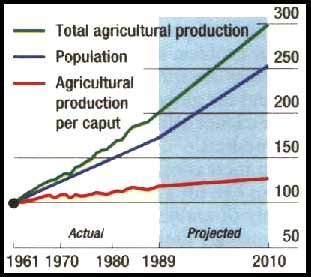 To feed the world population in the year 2025, predicted to be 8 500 million, current world food production will have to more than double. |