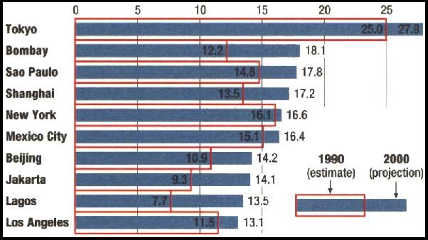 About one-third of the people in cities of the developing world live in desperately overcrowded slums and squatter settlements. |