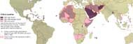 Countries with high levels of manufactured exports, mineral or fossil resources are more likely to be able to afford to import food and fertilizers. The map shows countries which, with differing levels of agricultural inputs such as fertilizers and irrigation, are projected to be dependent on food imports by the year 2000.