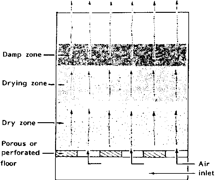 Figure 6.15 Drying zones in bottom-ventilated storage bins