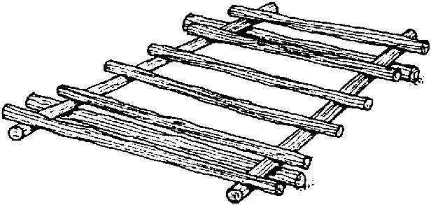 Alternatively, straight poles are laid on the floor and the sacks are placed on top.