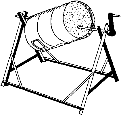 Mixing of the dusts with the grain can be done in various ways, such as shovel mixing on a tarpaulin, or, for large-scale operations, a drum with an eccentric axle is used.