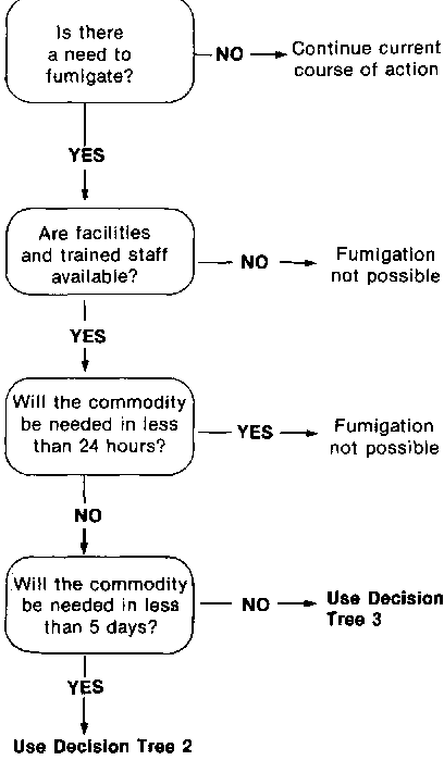 The following three 'decision-trees' provide a pathway that allows managers to make the choice of fumigant.