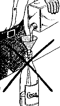 Para a preparação das formulações EC, deve-se pôr primeiramente a quantidade de água requerida num balde (1), ajuntar a quantidade calculada de insecticida com um copo graduado (2) e revolver com cuidado a mistura servindo-se de um bastão (3). A mistura deveria ser enchida então no pulverizador passando pelo filtro que se encontra no recipiente para o insecticida (4) para evitar o entupimento do bico com impurezas. Os líquidos EC de puiverização são misturas estáveis (emulsões) que não se separam, mesmo depois de um longo período de repouso.
