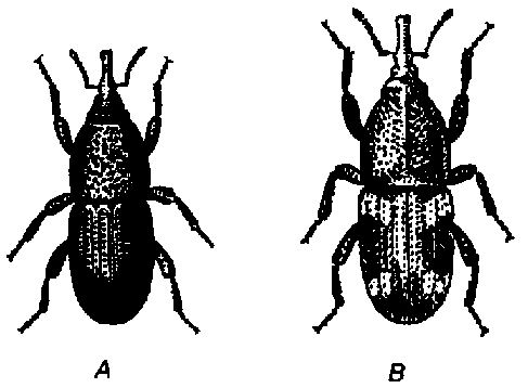 Fig. 70. A, Sitophilus granarius; B. S. oryzae (de DIEHL-WEIDNER).