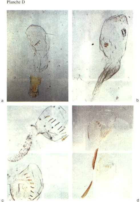 Rangée moyenne: c, touffe de soies sagittées (grossissement,