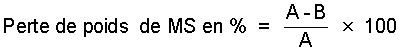 Les pertes de poids de MS se calculent selon la formule suivante: