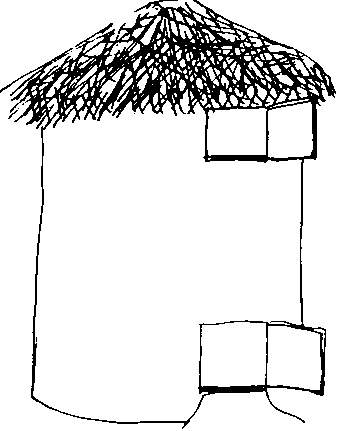 Le second entrepôt, de forme cylindrique, est fabriqué à partir de lattes et de plâtre, et de briques crues, il a deux portes, une au-dessus pour le chargement, l'autre dans le bas pour pouvoir facilement retirer les pommes de terre à vendre ou à consommer. Le chaulage réduit l'accumulation de chaleur et un toit en chaume protège les pommes de terre du soleil et de la pluie.