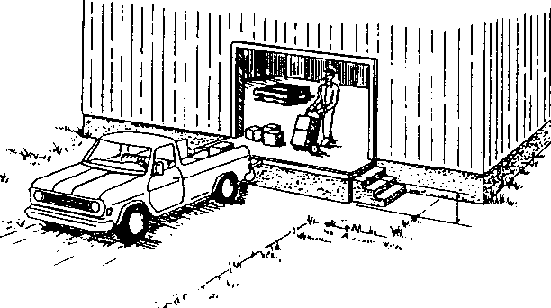 Source: Selders, A. W. et al. 1992. Facilities for Roadside Markets. (Installations pour marchés en bord de route) Northeast Regional Agricultural Engineering Service/Cornell University Cooperative Extension.Employez un quai de chargement d'une hauteur de 117 à 122 cm pour les grands camions et de 66 à 81 cm pour les pick-ups.