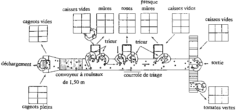 Source: USDA. No date. Tomato repacking methods and equipment. (Méthodes et équipement de conditionnement des tomates) USDA Marketing Service. Transportation and Facilities Research Division, Marketing Research Report No. 597.