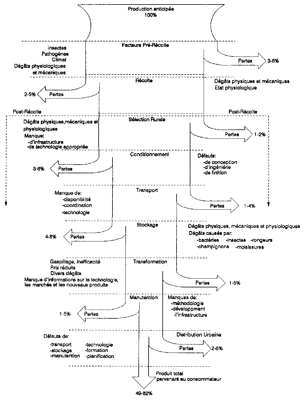 Figure 2.3: Causes des pertes pré- et post-récolte à divers points dans la filière agro-alimentaire