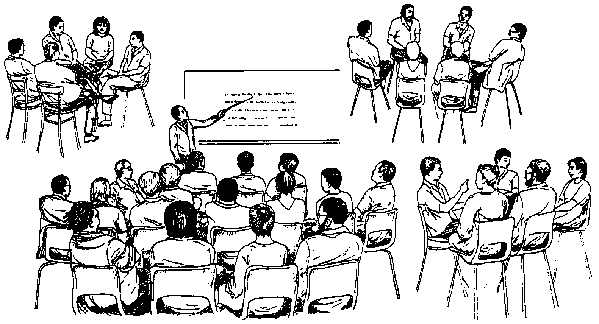 Debido a la dificultad para trabajar con grupos grandes, el cuerpo plenario debe ser dividido en subgrupos interdisciplinarios de cinco a ocho personas. Cada subgrupo debe incluir agricultores, gente con experiencia en post-cosecha y mercadeo y profesionales de varias disciplinas como sea posible. Cuando se requiera trabajo de grupo, v. gr., para la recolección de información faltante, para el análisis de problemas, para la identificación de ideas de proyecto y otras soluciones y para la formulación de perfiles de proyecto, estos subgrupos podrían ser convocados. Cada subgrupo podría seleccionar su propio coordinador y su vocero para reportarse a la sesión plenaria.