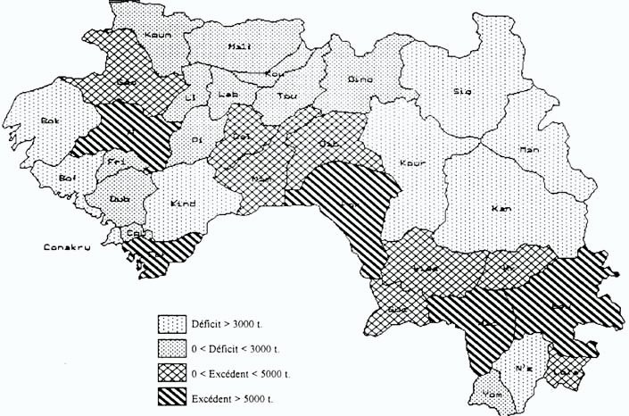 Fig n° 2: Zones excédentaires et déficitaires en riz local (source PASAL)