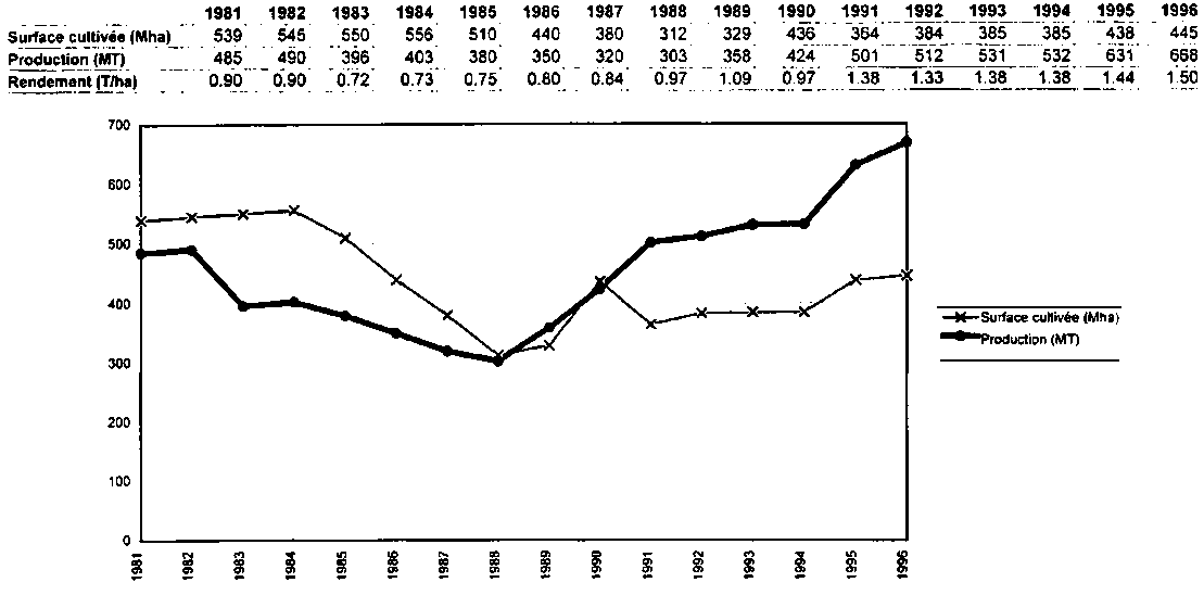 Fig n° 1: Evolution de la production de riz en Guinée (source FAO Internet)