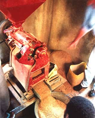 Photo n° 9: Décortiqueur (SOAGRIMA) entraîné par moteur électrique (Sangarédi)