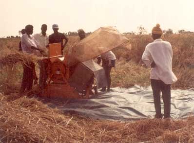 Batteuse Votex de 400 kg/h (moteur diesel, auxiliaire de vannage). Novembre 1989, Vallée du fleuve Sénégal