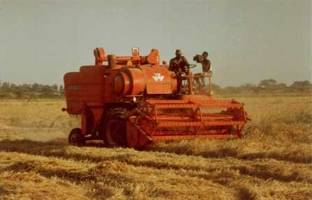 Moissonneuse-batteuse Massey-Ferguson 820. Décembre 1989, Boundoum, Vallée du fleuve Sénégal.