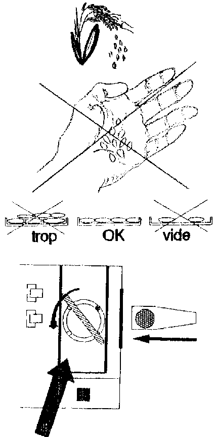 10. Sur chaque épis, enlever les grains à la main, les mélanger, et les disposer sur le porte-échantillon à l'aide d'une cuillère.