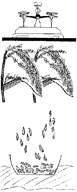 1. Placer la balance sur un endroit plat et équilibrer le mieux possible.2. Avec cette balance, vous devez peser 1000 grains de paddy. Il faut donc suffisamment de grains jeunes et dorés.
