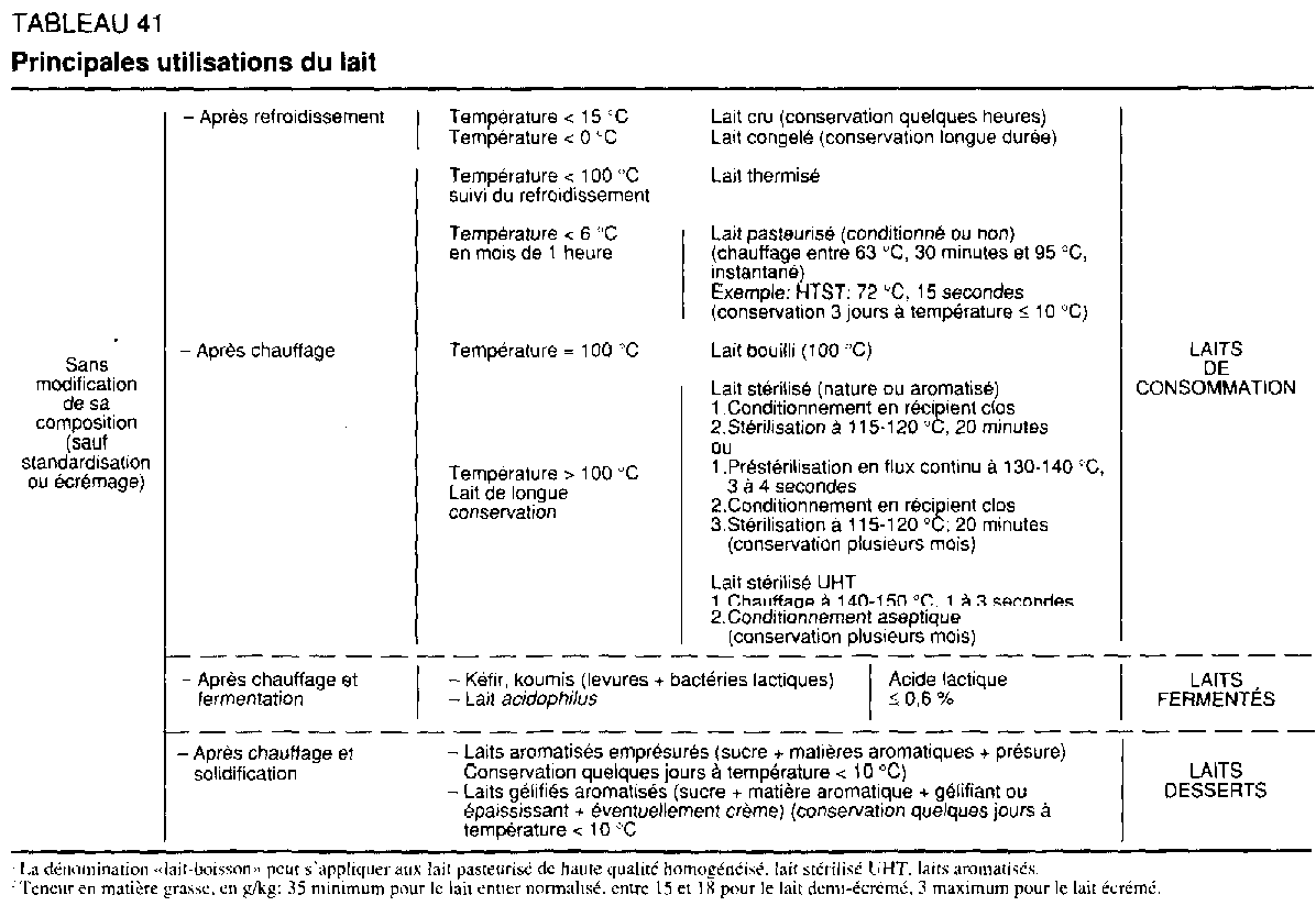 Le temps de conservation reste de toute façon étroitement lié à la charge microbienne du lait mis en refroidissement. Aussi convient-il de respecter le barème indiqué au tableau 43.